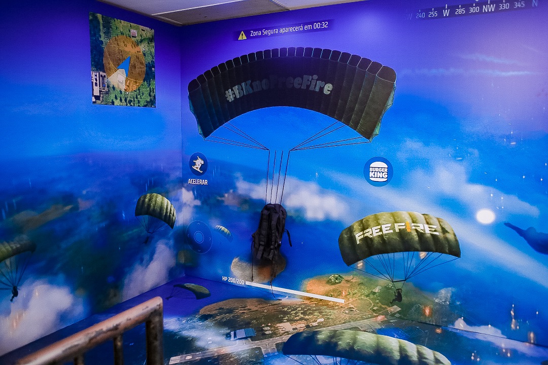 No primeiro andar, uma ambientação realista trará um paraquedas para os fãs tirarem fotos e imaginarem que estão “pulando” para a área dos embates. Seguindo para os outros ambientes, é possível se imaginar dentro do famoso e tradicional mapa Bermuda, com cenografias do jogo, como a Fábrica e Observatório. Já no segundo andar, terão alguns ambientes temáticos do conhecido mapa Kalahari, como, por exemplo, o Cemitério dos Elefantes e a Guarita.