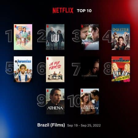 A Netflix atualizou o seu ranking de produções mais vistas na plataforma na semana passada (19 até 25 de setembro).