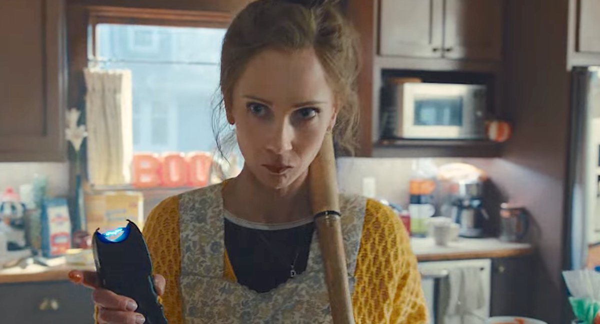 No video vemos a personagem de Temple com um sotaque americano carregado, ela é britânica, na cozinha conversando com uma amiga no telefone enquanto cozinha. Até que batem na porta e ela prontamente tira uma arma de choque, uma pistola, e um bastão.