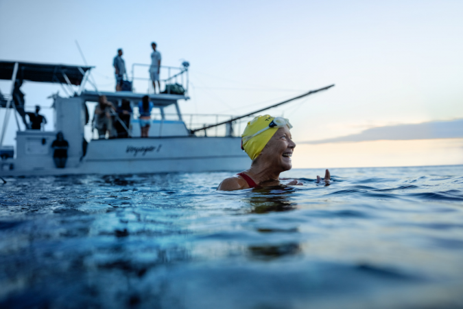 “Nyad” conta a impressionante história real de Diana Nyad. Aos 60 anos e com a ajuda de sua melhor amiga e técnica, a atleta decidiu realizar o grande sonho de ser a primeira pessoa a concluir o “Everest da natação”: um percurso de 177 km, cruzando o mar aberto entre Cuba e a Flórida.