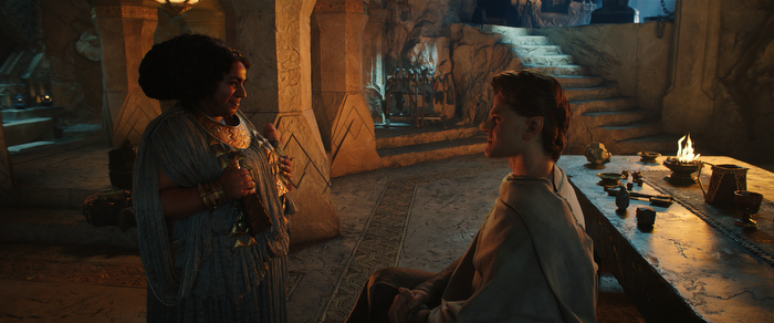 A relação com a Rainha Regente Mirel (Cynthia Addai-Robinson) ganha novos ares na medida em que as personagens têm mais tempo de tela juntos e realmente entregam as melhores passagens desse episódio. E por conta de um sonho /profecia (mais uma) O Senhor Dos Anéis: Os Anéis de Poder garante mais uma vez, por mais uma cena, passagens das mais cinematográficas possíveis e só deixam o ar épico da atração lá em cima. O mesmo vale para as cenas que marcam o retorno para a Terra dos Anões, onde a carismática Princesa Disa (Sophia Nomvete,ótima) retorna e Elrond (Robert Aramayo) tem belas discussões e momentos, onde o elfo descobre o que os anões do Príncipe Durin IVestão a planejar. Spoiler Alert: o tal metal chamado mithrilserve como um easter-egg no episódio e que tem relação com aquela vestimenta de Frodo dos filmes.