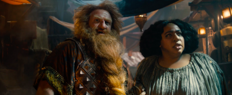 Os problemas para Durin IV (Owain Arthur) e sua esposa Disa (Sophia Nomvete, tão boa e que merecia mais destaque) só devem aumentar depois que o caos é instaurado no Reino dos Anões e a relação com o pai dele, o rei Durin II (Peter Mullan) deve azedar ainda mais. O mesmo deve valer para as duas pés peludos, Poppy (Megan Richards, ótima) e Nori (Markella Kavenagh) que continuam em viagem e precisam, claro, enfrentar todo tipo de ameaça, desde de figuras máscaras e um Bruxo Sombrio (Ciarán Hinds), até mesmo estarem perambulando pelo deserto. E também para a figura chave da primeira temporada, do homem que caiu do espaço, O Estranho (Daniel Weyman) que o mistério de sua identidade é carregado até agora e aqui ocupa, também, parte dos episódios do segundo ano, principalmente quando vemos o encontro dele com o misterioso Tom Bombadil (Rory Kinnear).