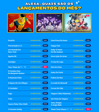 Alexa, o que estreia no Prime Video em novembro? A Amazon liberou a lista com os lançamentos do mês com bastante novidades para todos os públicos.