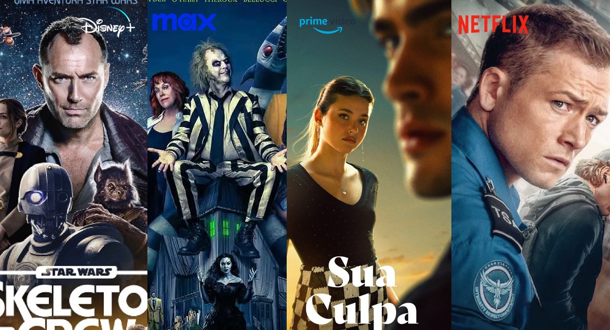 E dezembro vem recheado de estreias nas principais plataformas. No Disney+, os destaques do mês ficam com o lançamento da nova série Star Wars estrelada por Jude Law chamada Star Wars: Skeleton Crewno começo do mês, a série spin-off de Divertida Mente também chega na plataforma em Dezembro com o título de Produção de Sonhose ainda Os Feiticeiros Além de Waverly Place que chega com os primeiros 7 episódios.