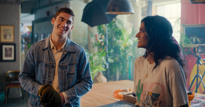 E nem foi pela personagem irritante que a carismática Simone Ashley (tá, em partes ela sim, já que a personagem interpretada por ela, logo no começo do filme, já sai correndo pelas ruas de Londres usando havaianas, perde o sapato igual a Cinderela, depois anda uma parte do filme sem nada e ninguém fala nada), ou por finalmente ver Hero Fiennes Tiffin fora da franquia After(um querido, já entrevistei) ou por ter um filme que abraça a cultura indiana de uma forma muito legal, e sim por que o trio de roteiristas Nikita Lalwani, Nathan Ramos-Park e Shuang Hu até tem ideias legais (é baseado no longa australiano Five Blind Dates), mas que são apenas pinceladas aqui e que são apenas glimpses do tipo de filme que o longa poderia ser.