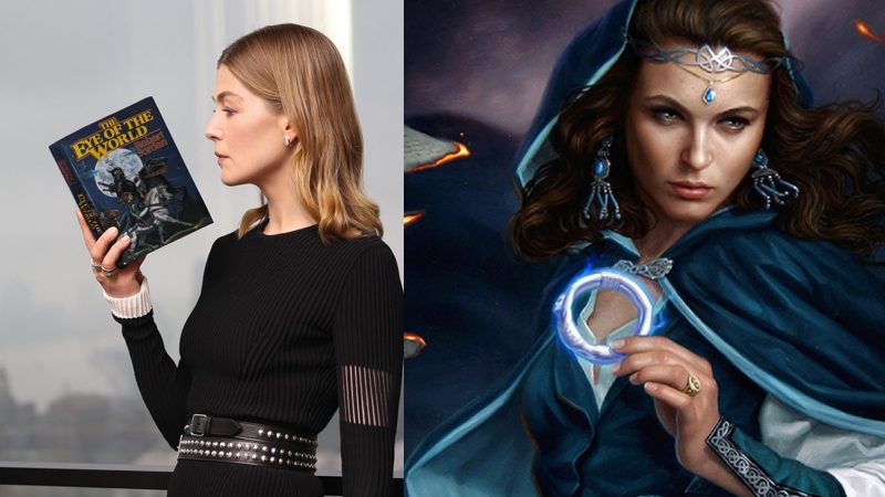 Pike será Moiraine Damodred no seriado. A fan-art que ilustra a publicação é de capa de um eBook por Dan Dos Santos.
