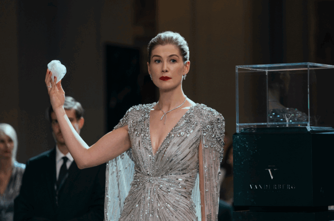 O terceiro filme segue a cartilha dos outros filmes e faz novamente uma coisa que funciona dentro do que se espera da franquia e do universo que o longa apresentou. Você só precisa olhar com bastante atenção! Afinal, em Truque de Mestre 3 o ricaço inescrupuloso da vez fica nas mãos da talentosa e competente Rosamund Pike que realmente está muito bem como a ardilosa e perigosa Veronika Vanderberg que parece comandar tudo: desde de times de corrida de fórmula 1, empresas que extraem diamantes, até outras organizações que fornecem armas para pessoas não tão legais assim.