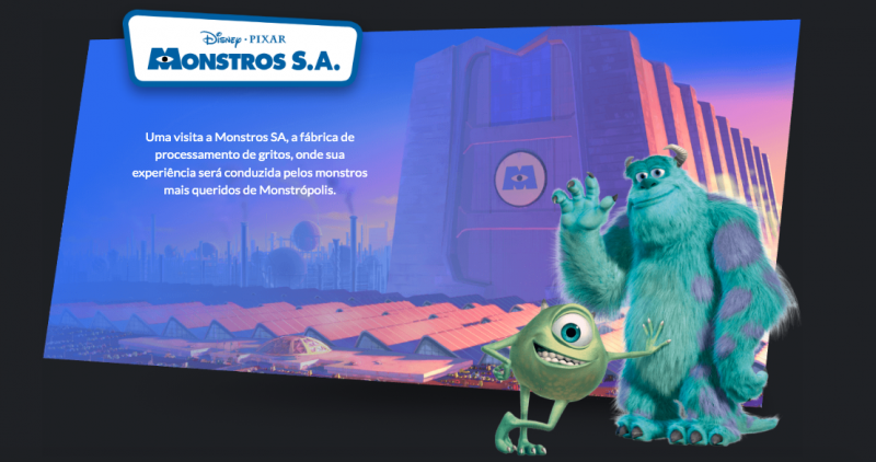 Mas como vai ser efetivamente? A experiência foi planejada para durar no total 1 hora e 30 minutos tranquilamente. Assim, o evento começa com uma primeira sala, uma sala de boas vindas, com uma projeção 270 da Pixar.